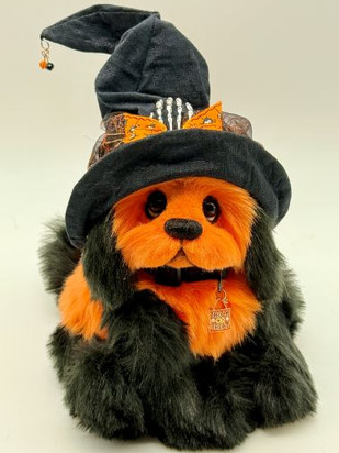Custom stiffened witch hat with trims, Collar with halloween charm.